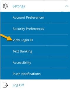 To locate your LOGIN ID, log in into your digital banking account, click on settings, and select: View Login ID