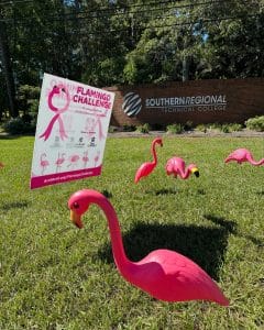 Launched in 2020 by First Commerce and the Tallahassee Memorial Hospital (TMH) Foundation, the #FlamingoChallenge, is a unique community fundraiser where businesses, organizations and individuals can show their support for breast cancer patients by claiming a flock of pink yard flamingos, placing them in front of their home or business, and then making a pledge to donate or fundraise, as well as post pictures with their flamingos on social media.