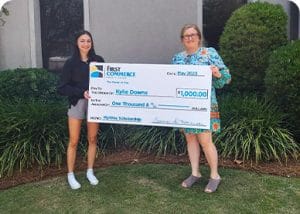 First Commerce Credit Union recently awarded four $1,000 MyWay scholarships to credit union members ages 17-29 to help support their higher education pursuits. This is the ninth year First Commerce has awarded scholarships to recognize students who demonstrate excellence in school and beyond. Two MyWay scholarships were awarded to Georgia students and two were awarded in Florida. Kylie Downs from Adel, GA, and Cohen Smith from Valdosta, GA, were selected as this year’s Georgia scholarship recipients.